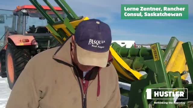 "We’ve been really impressed with our Hustler balefeeder. This past winter we were limited on hay supply because of dry weather, and we were able with this machine to limit-feed our cattle rather than free-choice our cattle and it really helped us stretch our hay supply through the entire winter. Not only did it do that, but it allowed us to feed hay throughout the pasture and spread fertiliser and nutrients around, so it’s been a real money-saver for us."